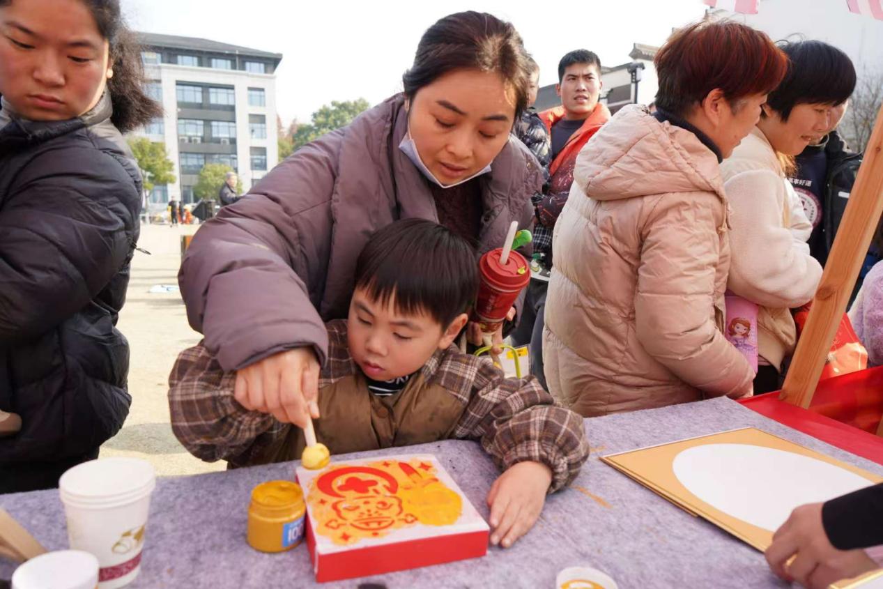 拓印福韵项目更是吸引了不少人的眼球。小朋友们亲手拓印福字或年画,感受传统文化的韵味。一张张精美的拓印作品,不仅传递了节日的祝福,更拉近了彼此之间的距离。