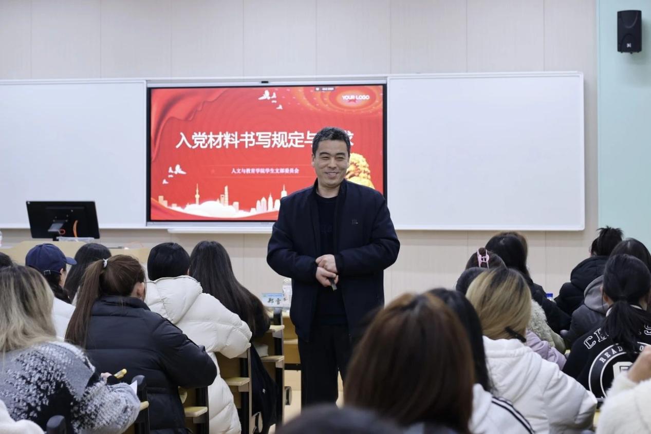 在培训过程中,学生党支部书记张登高老师详细介绍了学院学生党员发展要求,并针对入党申请书、思想汇报等五种关键入党材料,深入讲解书写规范,为学员们的入党之路提供了基础指引。
