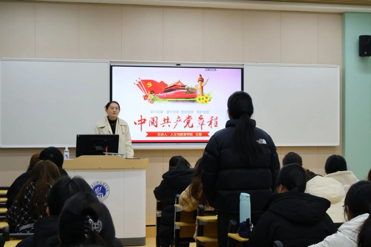 近日,人文与教育学院学生党支部第七期入党积极分子培训班在学校一号教学楼1402教室顺利开展。此次培训课程内容丰富、形式多样,聚焦提升入党积极分子思想政治素养,夯实他们坚定理想信念,厚植红色根基。