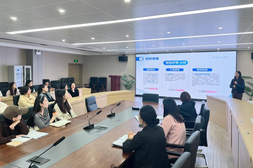 分享会上,张燕婷老师以第五届长三角民办高校教师教学技能大赛为核心,从“大赛基本情况、材料准备、内容展望”三个维度进行了系统梳理与细致解读。她结合自身经历,详细介绍了大赛的赛程阶段、组别设置与参赛要求。随后,她重点剖析了网络评审与现场评审的评审规则差异。结合案例,她深入讲解了课程实施大纲、课堂教学实录视频、教案设计及教学创新报告等材料的准备标准与注意事项,并分享了现场汇报的逻辑构建与答辩技巧,为在场教师提供了清晰实用的备赛指南。
