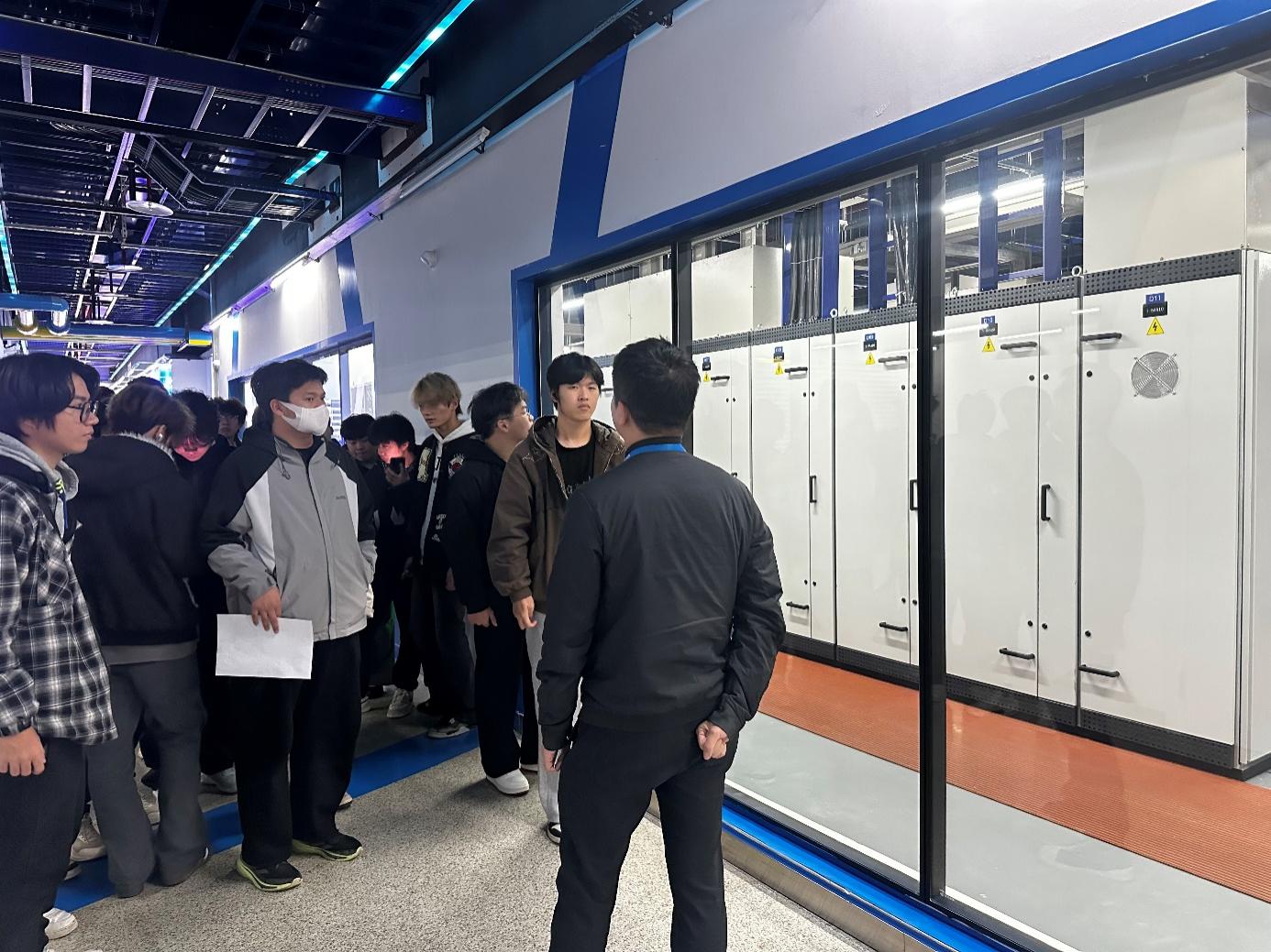 在讲解人员的带领下,师生团队首先参观了算力中心。中心部署了多组高性能AI算力服务器集群,支撑着长三角地区人工智能训练、推理及大数据处理等关键任务。教师们结合现场设备,向学生讲解了GPU算力、分布式训练、浮点运算能力等技术在实际场景中的应用,让学生对“算力即生产力”的行业共识有了直观认知。