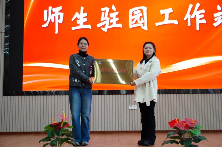 活动现场,校企双方举行了隆重的揭牌仪式与聘书颁发环节。葛玲妹与袁雨晨共同为“实践教学基地”“人才储备基地”揭牌,周妙怡与张浪浪共同为首个“师生驻园工作站”揭牌。葛玲妹为袁雨晨、周汝奕、张浪浪三位企业专家颁发“外聘讲师”聘书。