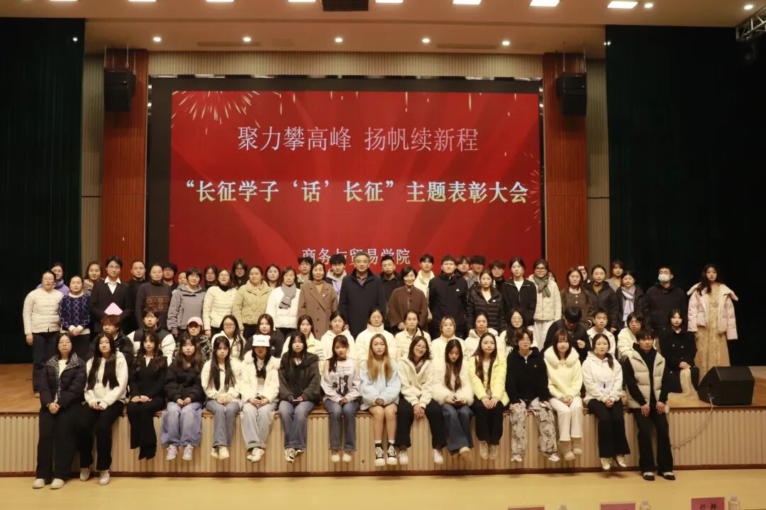 近日,商务与贸易学院“聚力攀高峰 扬帆续新程”长征学子“话”长征主题表彰大会在学校第一报告厅举行。学校党委副书记吴有恩、学生处副处长郑鲜出席大会,商务与贸易学院党政领导班子及师生参加大会。