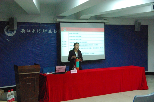 本次培训具体分为三场。第一场是消防、防盗、防骗、交通安全知识的培训,由保卫处的佟姗姗老师负责讲解。她从相关火灾案件切入,分析了火灾发生的原因,点明了校园防火的隐患排查,总结了校园火灾逃生施救的技能,最后还示范了消防器材的使用规范。第二场是大学生心理健康知识的培训,由基础部的姬磊老师负责讲解。她就心理危机概念、大学生心理健康基本状况、心理危机干预的可能性、心理危机识别及干预程序、精神压力和心理危机干预策略六个方面入手,通过引用实例、心理小故事等方式向班主任们传授了学生心理调适的方法和技巧。第三场是预防艾滋病知识专项培训,由医务室的徐青春医生负责讲解。徐医生从艾滋病知识着手,深入浅出的提醒大学生们树立正确的人生观、恋爱观,在男女交往中做到洁身自好、自尊、自爱。