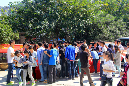 现场,商务系学生会干部及余姚籍学生,坚守募捐点为灾区人民尽最大的努力。商务系学生干部的付出打动了过往的同学,同学们纷纷解囊,有的甚至口口相传,带上同学和朋友再次到募捐点捐款、签名。