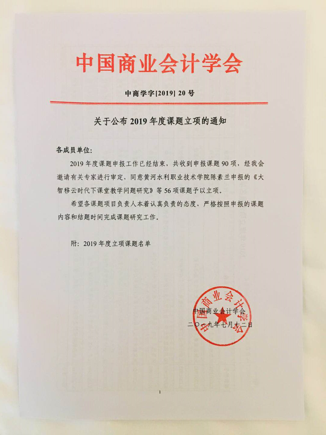 据中国商业会计学会文件《关于公布2019年度课题立项的通知》(中商学字〔2019〕20号),此次共收到申报课题90项,56项课题予以立项。立项项目中,我校有7位老师申报的课题获批立项,具体项目如下: