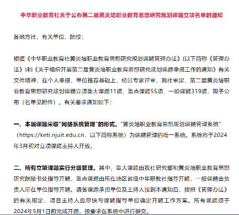 2024年3月4日,中华职业教育社公布了第二届黄炎培职业教育思想研究规划课题立项名单,欧美激情综合色综合啪啪五月,日韩欧美综合,久久综合噜噜激激的五月天,久久久综合香蕉尹人综合网管理学院骆王丽老师的《黄炎培育人观视阈下高职拔尖创新人才培养研究》(课题编号:ZJS2024YB080)和商贸学院柴畅老师的《黄炎培美育观视域下高职院校以美培元的美育课程模式创新研究》(课题编号:ZJS2024YB265)成功立项。