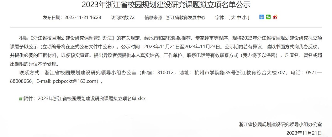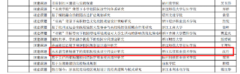 近日,浙江省校园规划建设研究领导小组办公室公布了2023年浙江省校园规划建设研究课题立项名单,学校建筑工程学院建筑装饰工程技术教研室主任沈丹申报的《未来教育新场景下的高职院校实训空间设计研究》获得课题立项。此项目是沈丹在2022浙江省高职院校教学能力比赛中荣获三等奖的参赛作品《“梦想改造家”—爆改出租房》的后续研究。