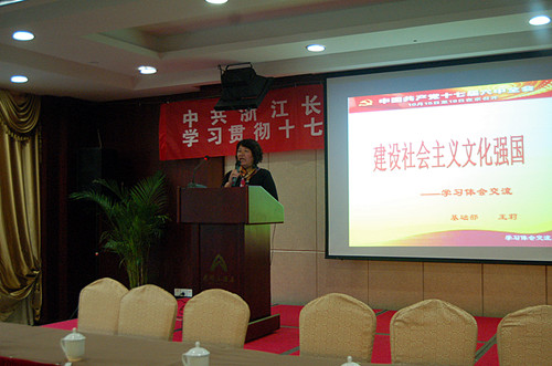 王莉老师从十七届六中全会的历史地位、建设社会主义文化强国的意义、十七届六中全会决议的主要精神等三方面为与会教职工党员深入剖析了十七届六中全会的会议精神。