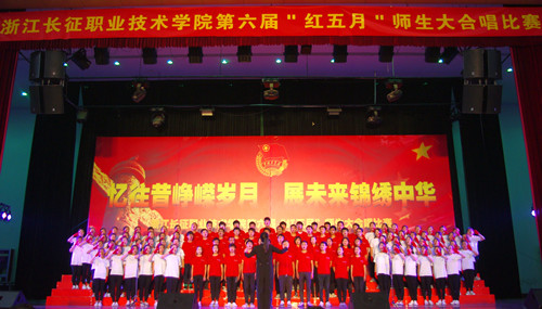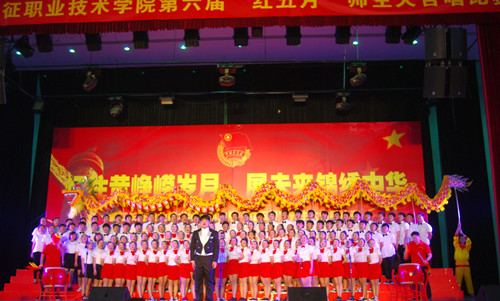 火红五月,激情飞扬。5月6日下午1点半,我院在体育馆举行以“忆往昔峥嵘岁月,展未来锦绣中华”为主题的第六届“红五月”师生大合唱比赛。大合唱邀请了周边共建单位以及各兄弟院校的声乐指导老师担任评委。执行院长吕振合教授等学院领导出席本次活动。现场1000多名师生一起观看了比赛。