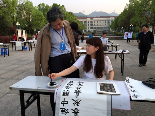 2016年4月13日下午,我院书法大赛在图书馆前广场拉开帷幕。本次比赛由学院团委主办,学生社团联合会、院书法协会和民乐协会承办。省教育厅相关专家及学院领导莅临指导、观看。本次大赛分为软笔和硬笔两类,要求自由发挥,不限字体风格。参赛选手由各系推选而出,各施其才。