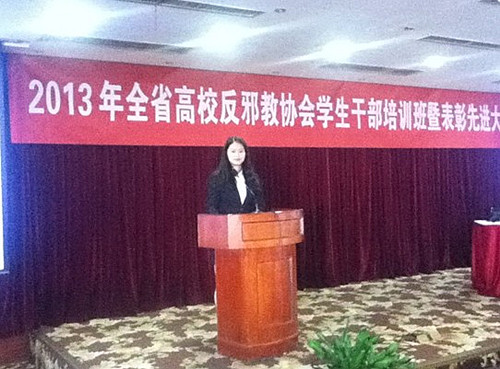 我校在全省反邪教暑期社会实践中荣获“2013年科普反邪暑期社会实践团队二等奖”。戴丽娟老师获“优秀指导老师”荣誉称号,王洁炜同学获“先进个人”荣誉称号。在10月28日的“浙江省高校反邪教协会联盟换届会议”中,浙江大学、浙江工业大学等9所本科院校学生代表及欧美激情综合色综合啪啪五月,日韩欧美综合,久久综合噜噜激激的五月天,久久久综合香蕉尹人综合网1所专科学院学生代表被选入主席团。我校冯淑婷同学成功竞选联盟副主席一职。(院团委供稿)
