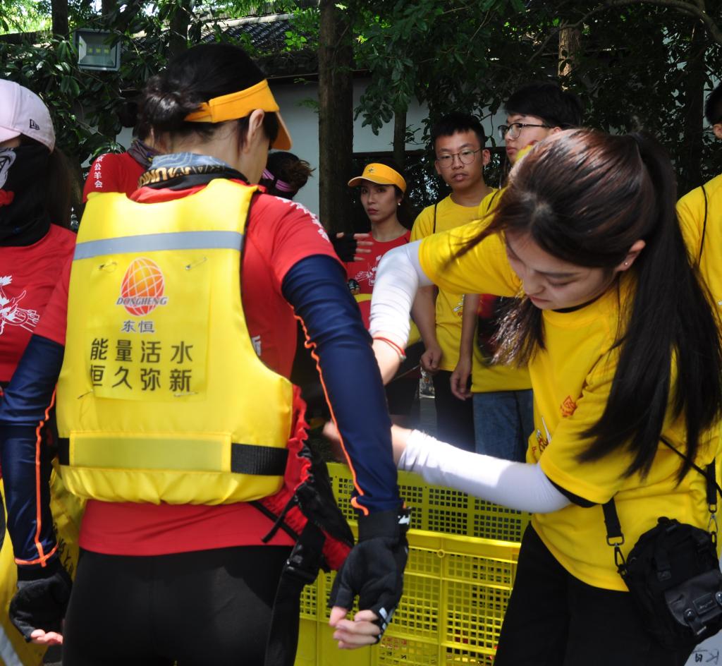机动1志愿者耐心细致帮助参赛人员脱下救生衣