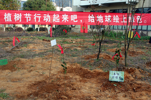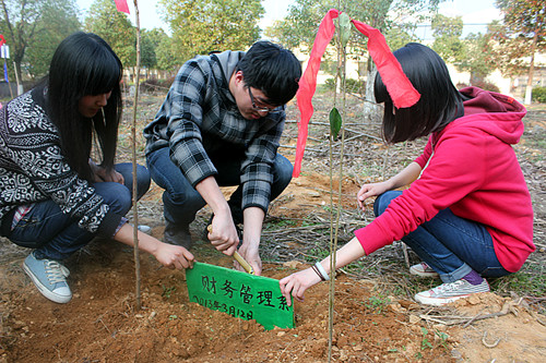 下午4时,我院一体两翼及各系学生干部在体育馆门前集合。在团委老师的带领下,同学们来到体育馆后的空地开始植树。大家都热情高昂、干劲十足,配合默契,分工明确,领树苗、铲土、植树、浇水,忙的不亦乐乎,将一棵棵充满生机和希望的树苗植入校园。植树活动开展地井然有序。经过大家的共同努力,共栽下30余棵树木。每种好一棵小树苗,同学们还纷纷在树苗上系上红丝带,希望它们茁壮成长。