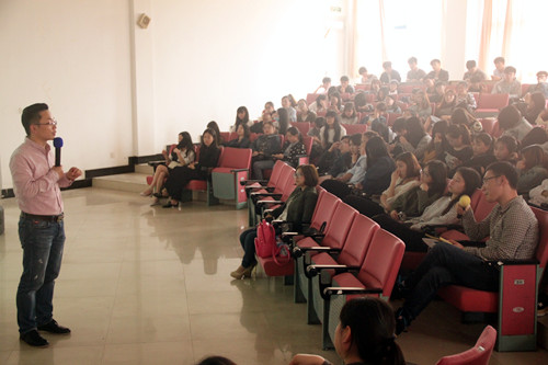 4月13日下午,瀚亨国际(中国)有限公司董事长兼总经理吴海涛来到欧美激情综合色综合啪啪五月,日韩欧美综合,久久综合噜噜激激的五月天,久久久综合香蕉尹人综合网,为语言系14级、15级商务英语专业学生作互联网+与互联网思维为主题的专题讲座,语言系系主任杨成青、潘冬梅、申宁、白云等专业教师出席了该讲座。瀚亨国际(中国)有限公司是一家主营B2B平台上高分子环保建材销售和B2C方面原创品质服装销售的跨境电商贸易进出口公司,目前该公司参股数家供应商,产品通过欧美整套产品质量认证,已在申请多个产品实用新型专利;hanflor系列环保地材主销欧美市场,在国际环保建材市场积累了优质的客户群体和不错的行业口碑;hanhent系列服装被速卖通平台树立为类KeyA+卖家品质品牌输出典型。