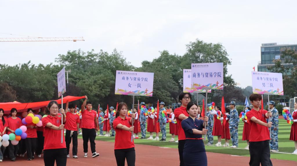 伴随着激昂的运动员进行曲,国旗护卫队迈着铿锵的步伐率先入场。各二级学院方阵队伍将专业特色融入入场式,彰显长征学子的青春本色。此次运动会开幕式,我校智能技术学院科创中心工业机器人团队带来了欢快灵动的机器狗舞狮表演,还特别邀请了小和山高校艺术联盟单位浙江外国语学院舞蹈队带来了动感的暖场表演。